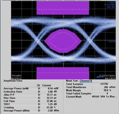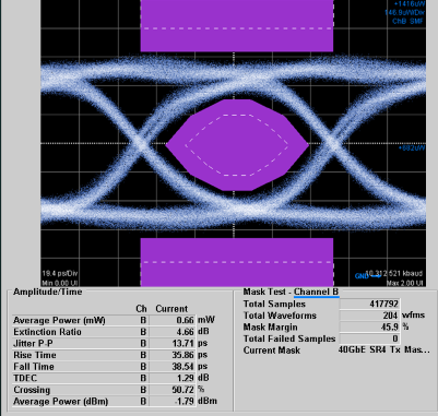 样品模块外壳45℃光眼图测试,眼图模板与参数如下: