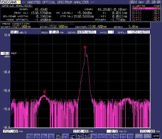 表5 SFP-GE-CWDM-1530-32DB-I-F10 光模块光谱形状