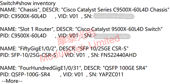 使用摩泰光电生产的CISCO兼容25G CSR,100G SR4光模块产品,接入设备以太网端口,可以正确识别模块类型。